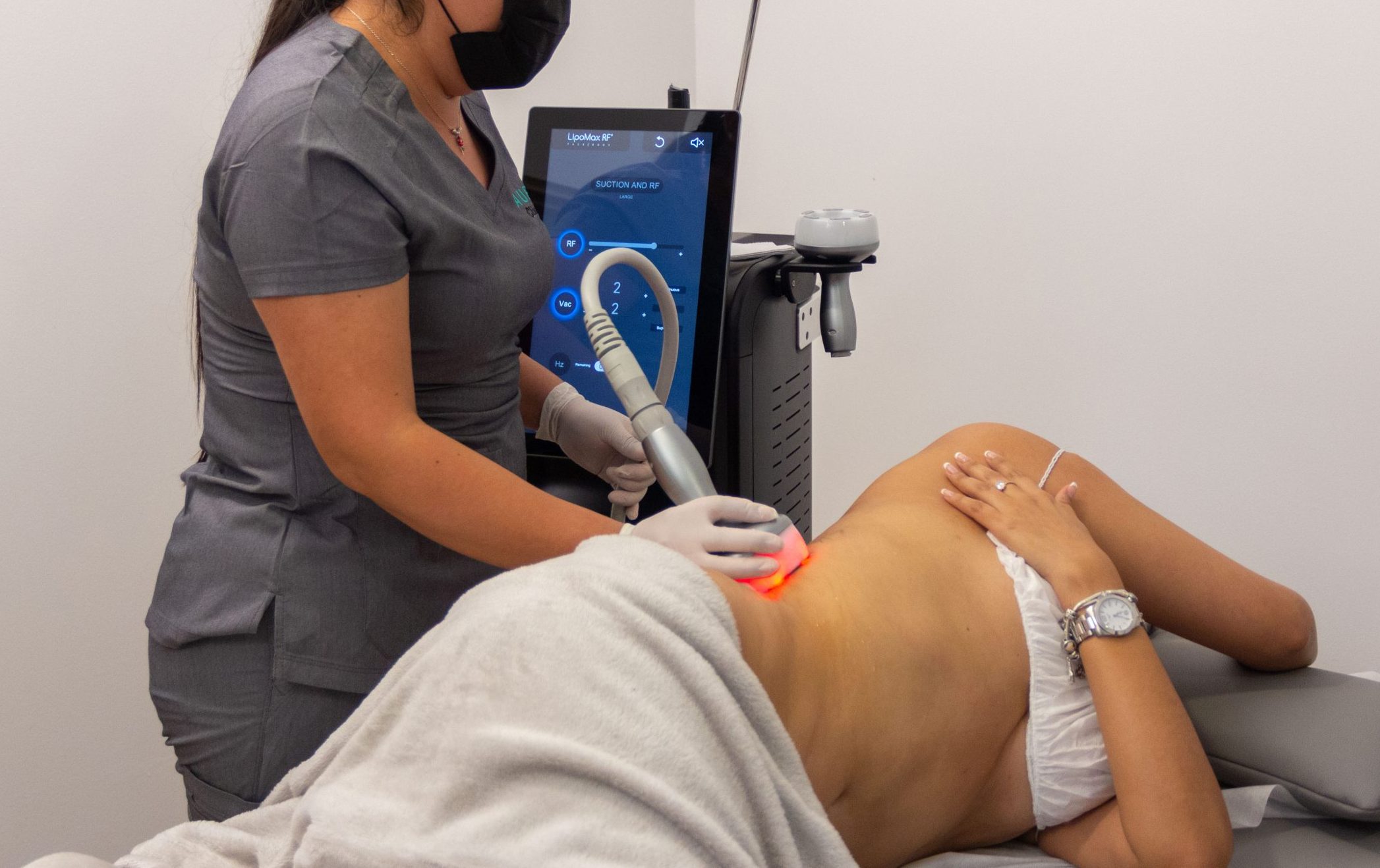 LipoMax RF ofrece tratamientos seguros y etectivos de: moldeamiento corporal, reducción de celulitis, reafirmación de la piel, levantamiento de glúteos, moldeamiento de brazos, definición de cintura, reducción de grasa en la línea del brasier, reducción y tonificación del abdomen, post-parto, pre y post liposucción, y rejuvenecimiento facial.
